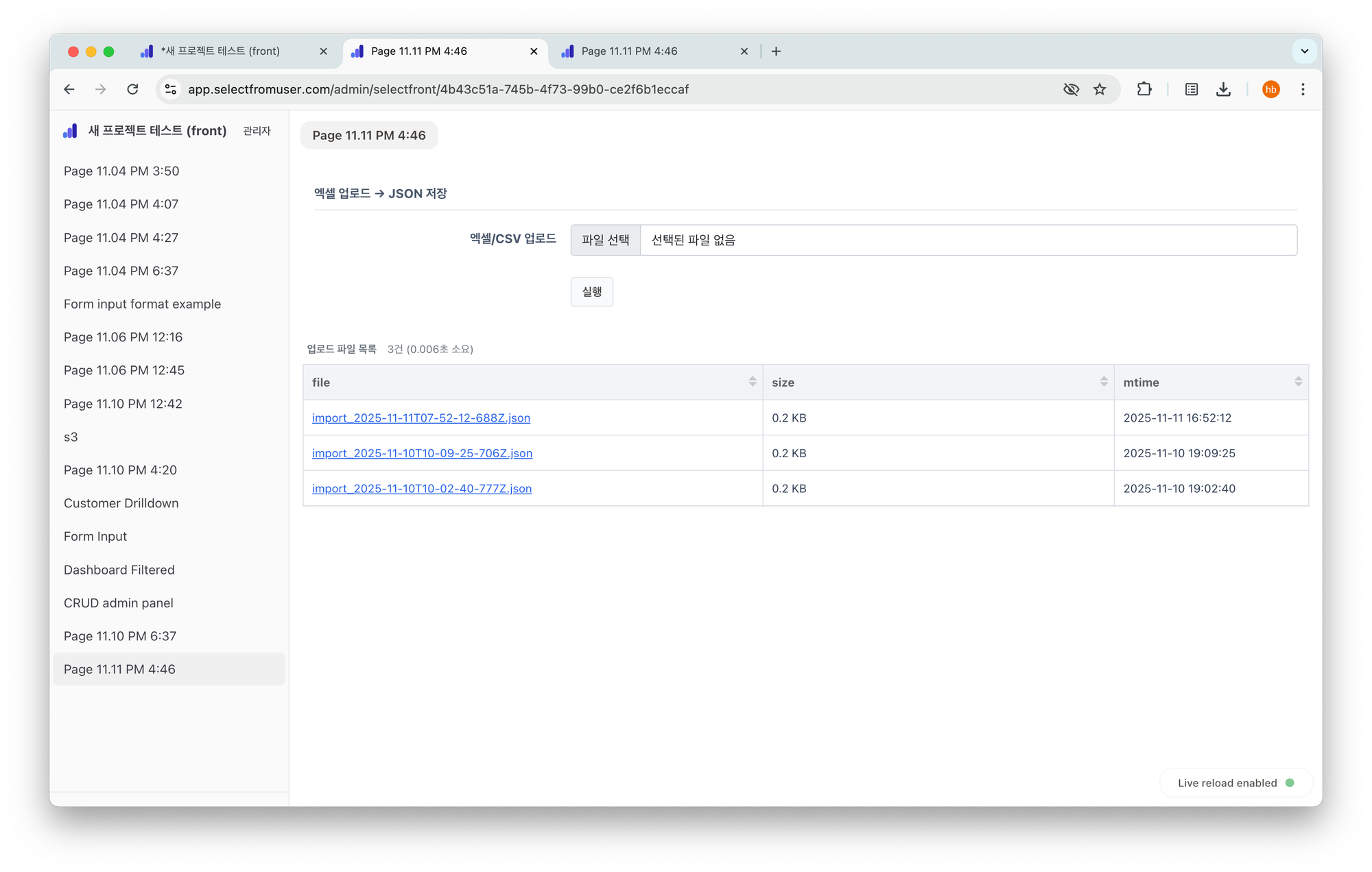 /local/import/save-json)로 전송 및 저장 - 업로드된 파일 목록을 테이블로 표시